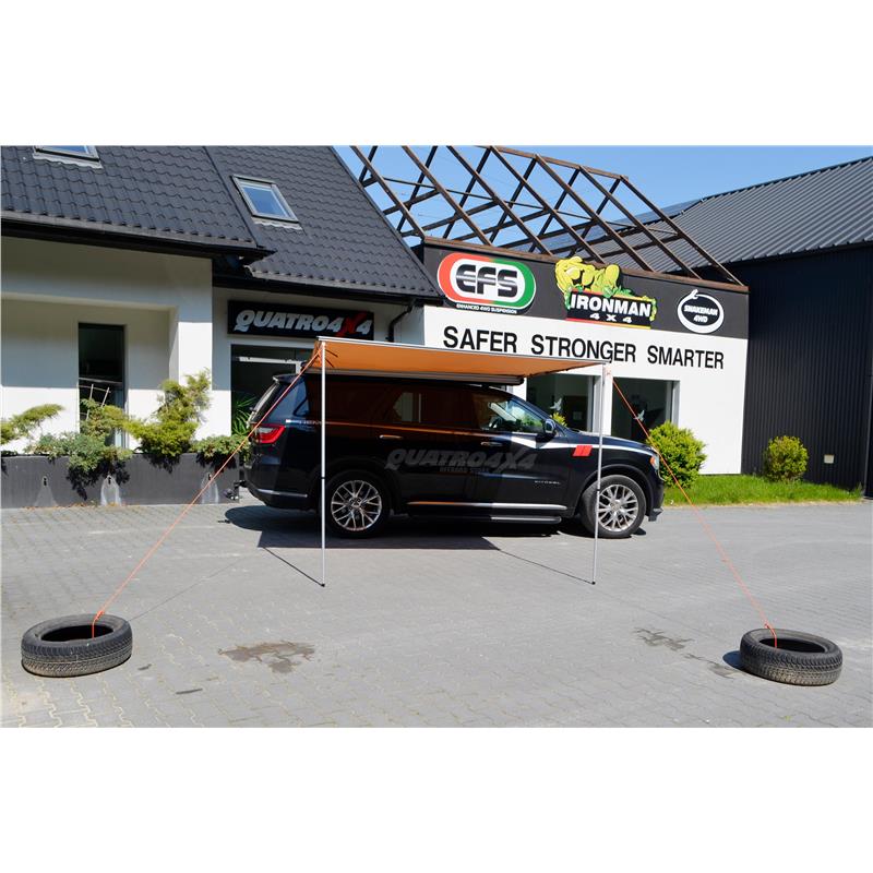 Copertina laterală (rulou/copertina) SNAKEMAN 4WD de 2x2m, atașată la portbagajul de plafon, este acoperirea perfectă pentru orice mașină cu portbagaj/balustrade.