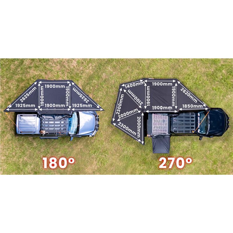• Acoperire largă la 180° –  Oferă protecție eficientă împotriva soarelui, ploii și vântului, creând un spațiu de relaxare confortabil chiar lângă vehiculul dumneavoastră.