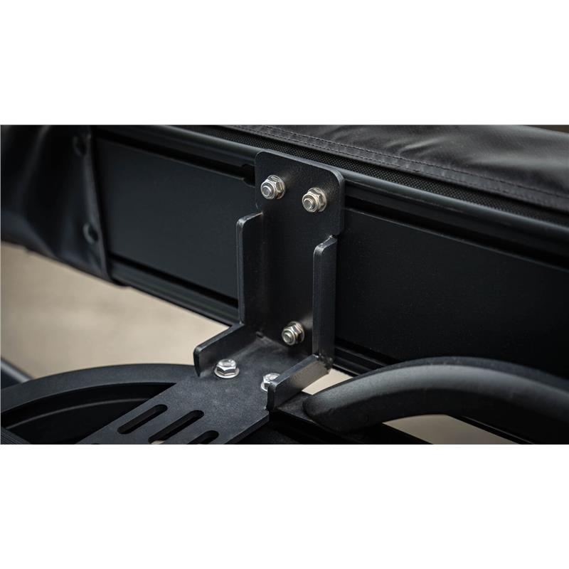 • Kit complet de accesorii:  4 suporturi fixe din aluminiu,  cabluri și cuie de ancorare,  sistem de blocare cu clichet cu eliberare rapidă,  suporturi în L pentru portbagaj sau platformă,  geantă din PVC negru de 1000 g/m² – rezistentă la apă și UV.