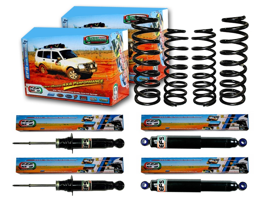 Produsul emblematic al EFS 4WD este o suspensie 4×4 întărită, ridicabilă , care și-a dovedit valoarea în interiorul extrem de dificil al Australiei, în timpul expedițiilor și competițiilor off-road. Sunt asamblate de pasionații de mașini off-road din întreaga lume!